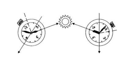 При наличии часов, можно определить стороны горизонта следующим образом. Часовой стрелкой поворачивают часы на солнце. Образовавшийся угол между направлением на 13.00 (полдень) и направлением часовой стрелки делят пополам. Бисектриса и будет указывать на южное направление. Данный способ дает наименьшую погрешность во время равноденствия (23 сентября и 21 марта).