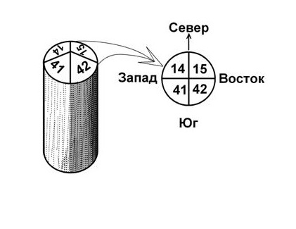 Для этого необходимо знать, что обычно просеки направляют с севера на юг и с востока на запад. Лес в результате получается разделенным на кварталы, которые номеруют с севера на юг, с запада на восток. Номера квадратов пишут на квартальных столбах, которые ставят на пересечениях просек. По нумерации на квартальном столбе и определяют стороны света — на северо-западе будет находиться первый номер (наименьший из всех на столбе), а на юго-востоке — последний (наибольший на столбе).